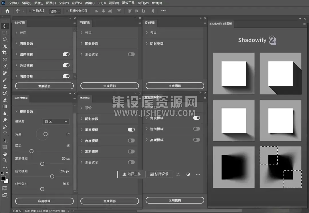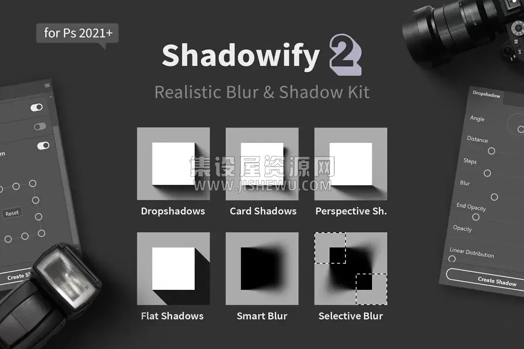 Shadowify 2有6个单个面板,每一个面板都是精心设计,能够胜任全方位的阴影效果制作。